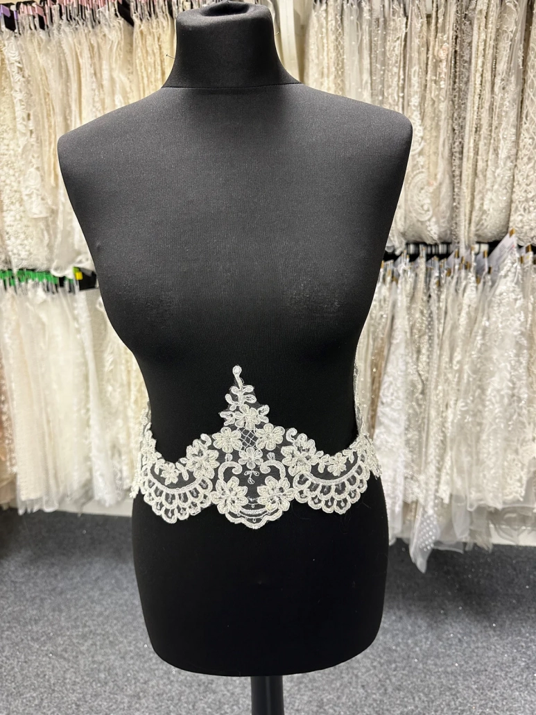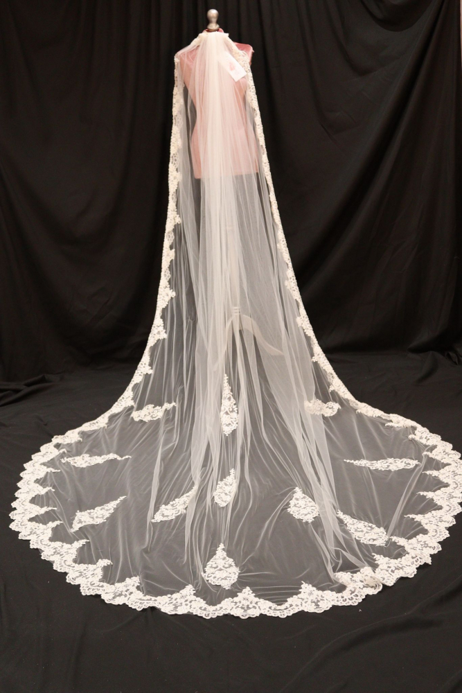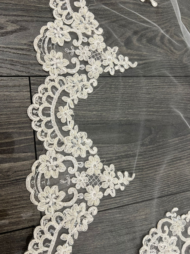 Order a small sample of this trim to view its beauty in person before ordering your veil by clicking above.