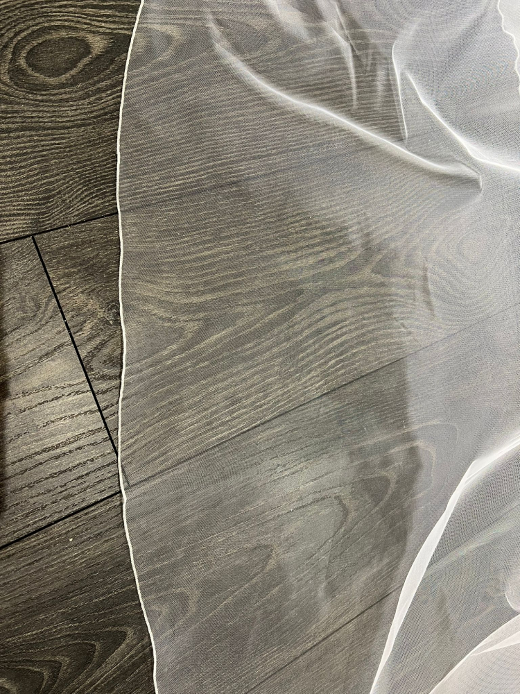 Our beautiful soft romance tulle with a simple pencil stitched edge. A simple but stylish style that will suit any bridal look
