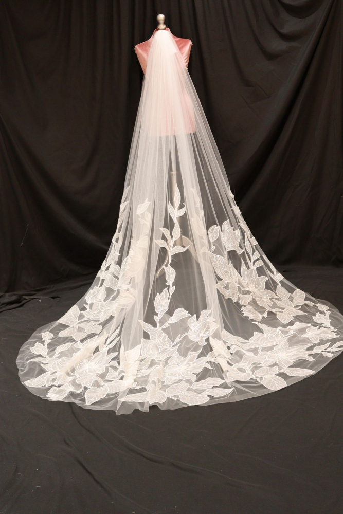 Order a small sample of this trim to view its beauty in person before ordering your veil by clicking above.