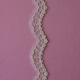 A beautifully detailed narrow Ivory beaded lace trim. Intricate embellishments detail this scalloped and corded edge trim with an asymmetrical eyelash edge for a soft finish. Adorned with delicate clusters of three beads scattered throughout the design, with sequins placed at every point adding subtle sparkle and texture.