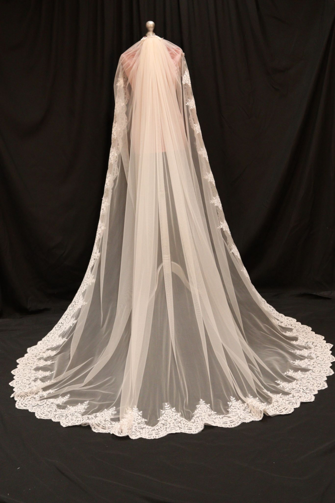 Order a small sample of this trim to view its beauty in person before ordering your veil by clicking above.