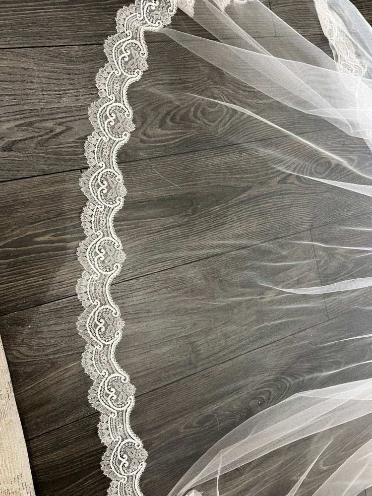 Order a small sample of this trim to view its beauty in person before ordering your veil by clicking above.